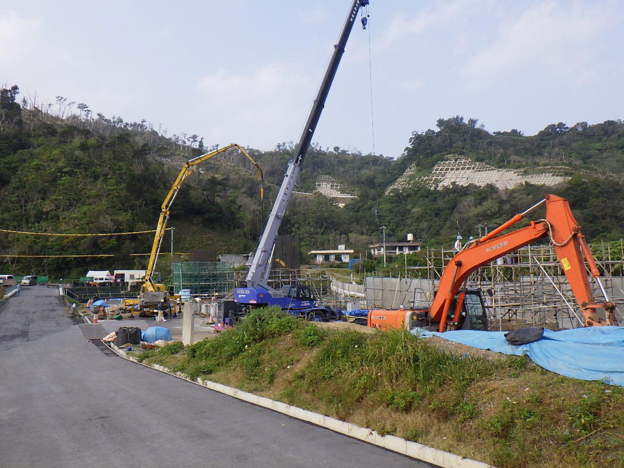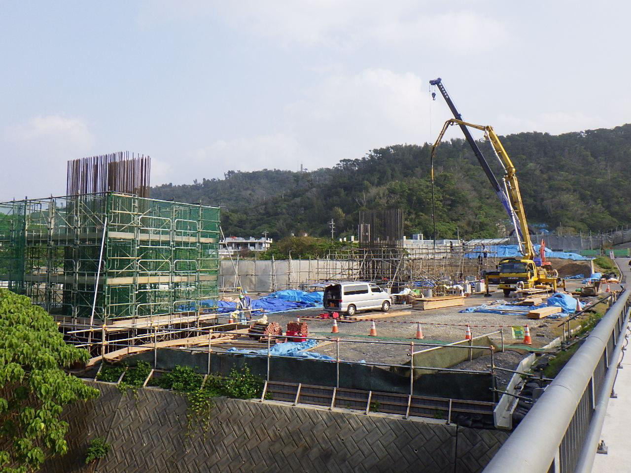 喜舎場 事業対象は恩納村南恩納~仲泊間6.5㌔です。工区は3つ(1工区2 ㌔、2工区2.8㌔、3工区1.7㌔)に分かれておりますが、2工区、3工区の4.5㌔について既に暫定2車線での整備を完了しています。現在は1工区残り2㌔の工事を進めており、平成29年度内には全線を暫定2車線で供用する予定です。事業費ベースで約8割程度の進捗状況です。一部用地買収が難航している箇所については収用手続きに入っています。