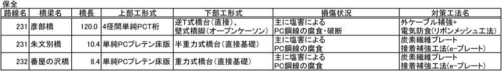 片倉 あります。増毛町の国道231号信砂川河口に架かる彦部橋(橋長120㍍、4径間単純ポステンPCT桁橋)です。河口から20㍍程度しか離れておらず、一部でPC鋼線の塩害による損傷が確認されていることから外ケーブルで補強すると同時に外部電源方式による電気防食(リボンメッシュ工法)で塩害対策を施しています。長期的に見ると架け替えが必要であると考えています。また、同じく国道231号の増毛町朱文別にある朱文別橋では、犠牲陽極(デンカガルバーシールドF)で塩害対策を実施しています。