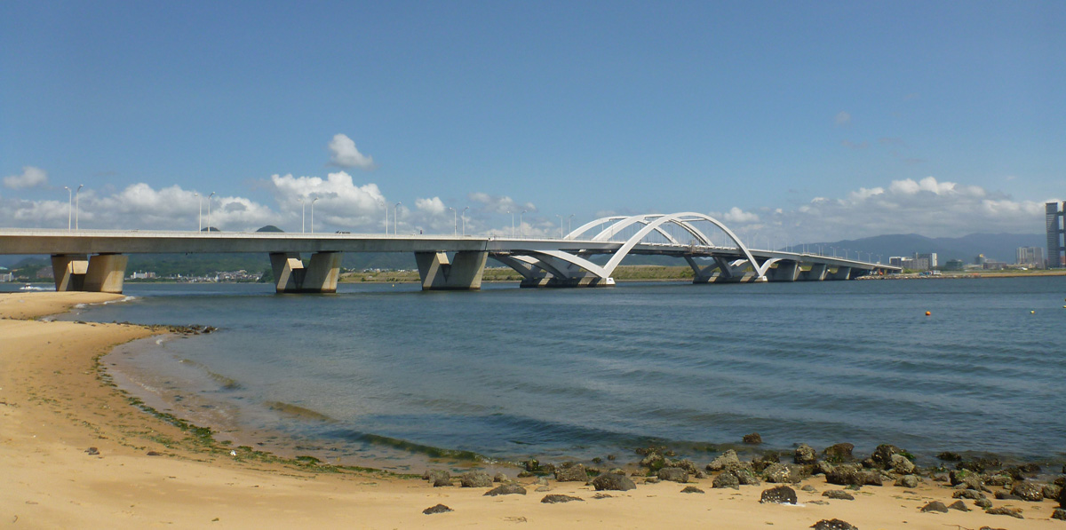 市内で最長の橋は、橋長750㍍の海の中道大橋(4径間連続PC中空床版+3径間連続PC箱桁+3径間連続鋼床版バランスドアーチ+3径間連続PC箱桁+4径間連続PC中空床版)です。ほか、特殊橋は、長谷ダムの道路として三日月橋(橋長67㍍、単径間ニールセンローゼ橋)を有します。