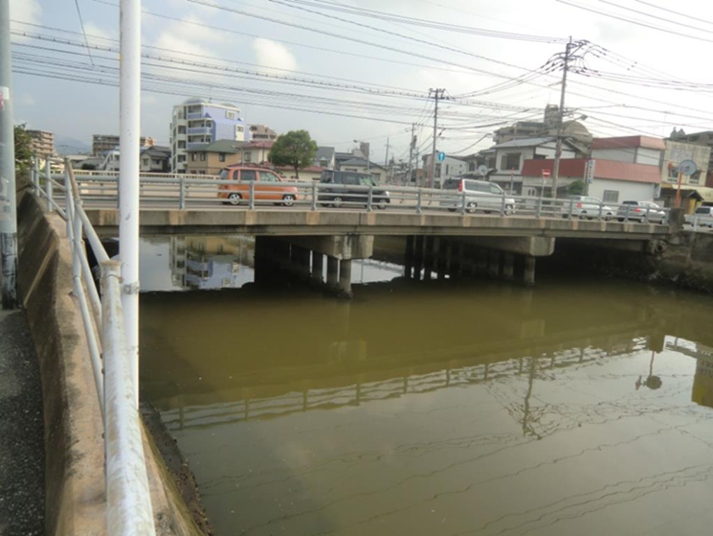 宮本 興徳寺橋です。福岡市西部を流れる名柄川下流に架かる橋梁です。都市計画道路であり、老朽化かつ幅員狭小の橋梁を架け替えし、拡幅するものです。現在の橋梁は昭和39年に完成しました。
