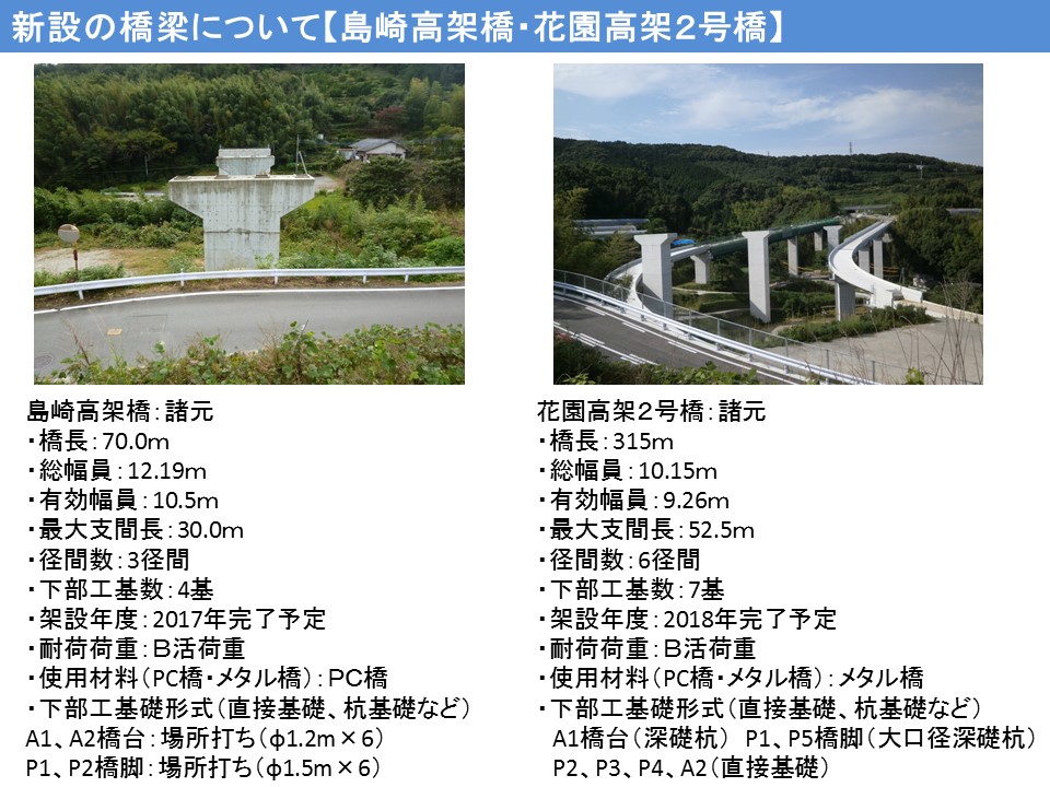 島崎高架橋および花園2号橋の現況写真および諸元