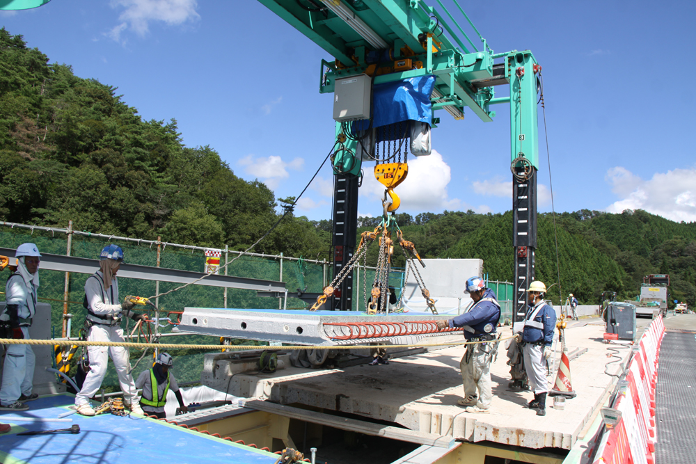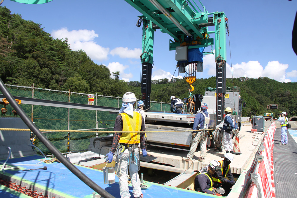 高倉 床版取替上の技術的課題としては、長期間の対面通行規制や昼夜終日夜間通行止めが不可能な都市部での社会的な影響低減に努めるための半割施工ができる床版取替工法を検討していく必要があります。道谷第二橋では半断面床版取替工法を試験的に採用しました。
