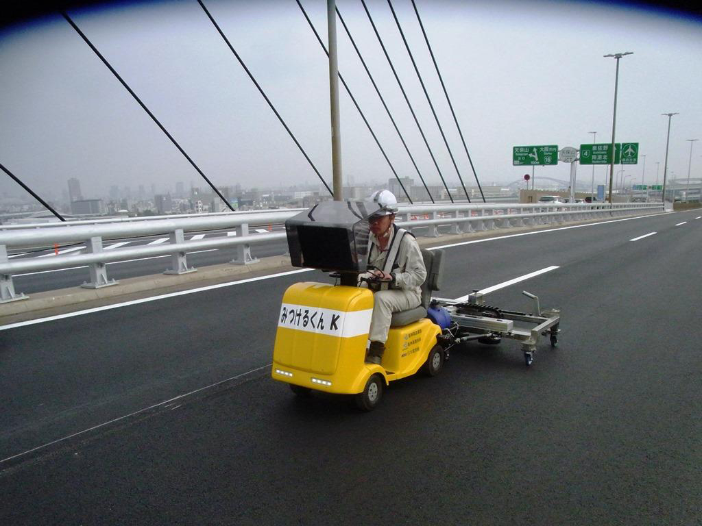 南荘 たとえば「ドクターパト」があります。各種のセンサーを搭載して、舗装や高欄、遮音壁、照明柱、標識柱を時速60㌔で走行しながら点検できる車両です。