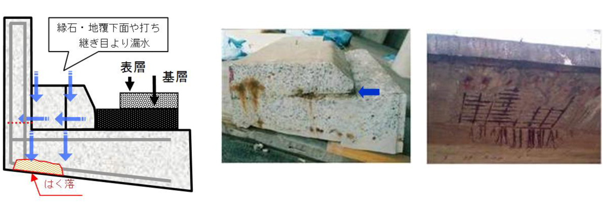 凍害のみならずASRも同様にそうした砂利化を助長しています。例えばこれらの影響が見られる北陸などでは、交通荷重などに起因した貫通ひび割れなどの疲労損傷に加え、なおかつ砂利化も生じています。このように日本海沿岸や東北、北海道などの寒い地域では、疲労に加え塩害または凍害など複合的な損傷要因で劣化、損傷が顕在化しているのが最近の特徴です。こうした状況を受けて、国土交通省では従来のような床版下面から調査できるひび割れや遊離石灰だけでなく、舗装に生じているポットホールに着目して、その周辺の床版は注意して点検するような配慮がされるようになってきています。
