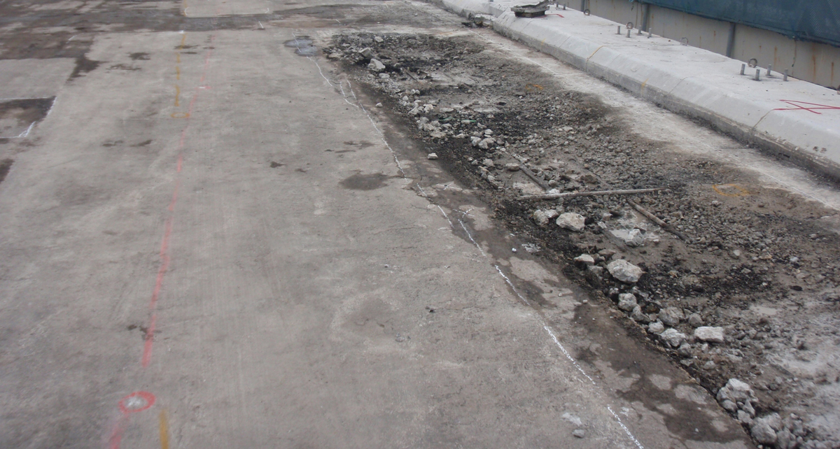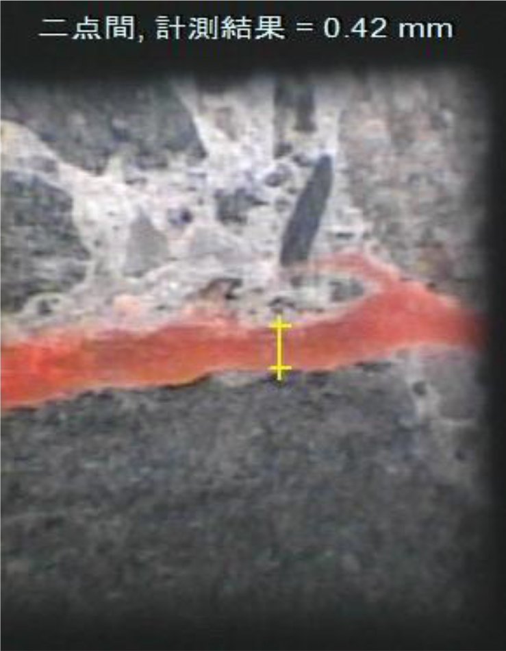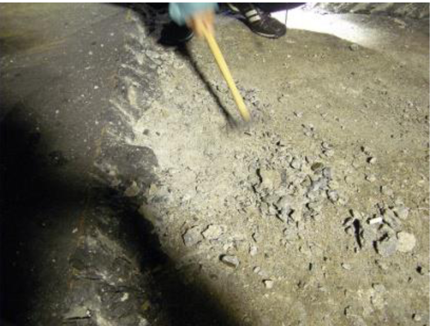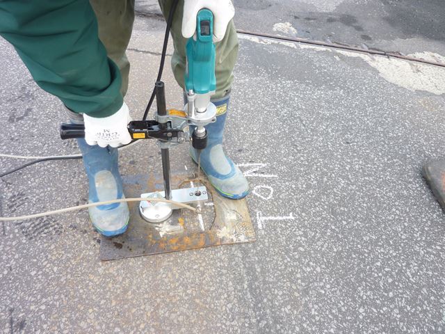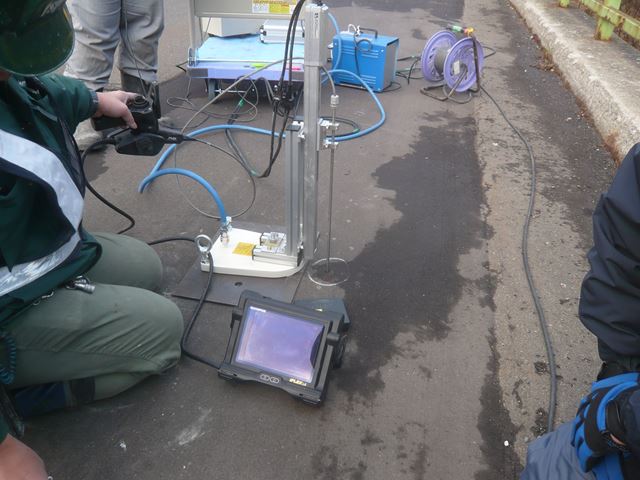 特に北海道などでは、凍害とも複合しポットホールが数メートルおきに深さ約10㌢、幅30~50㌢近くあっても、床版下面に遊離石灰や貫通ひび割れがない状態が見られることもあります。こうした損傷は床版下面からは推定できませんが、舗装と砂利化部を除去してみると版厚は減っているわけです。