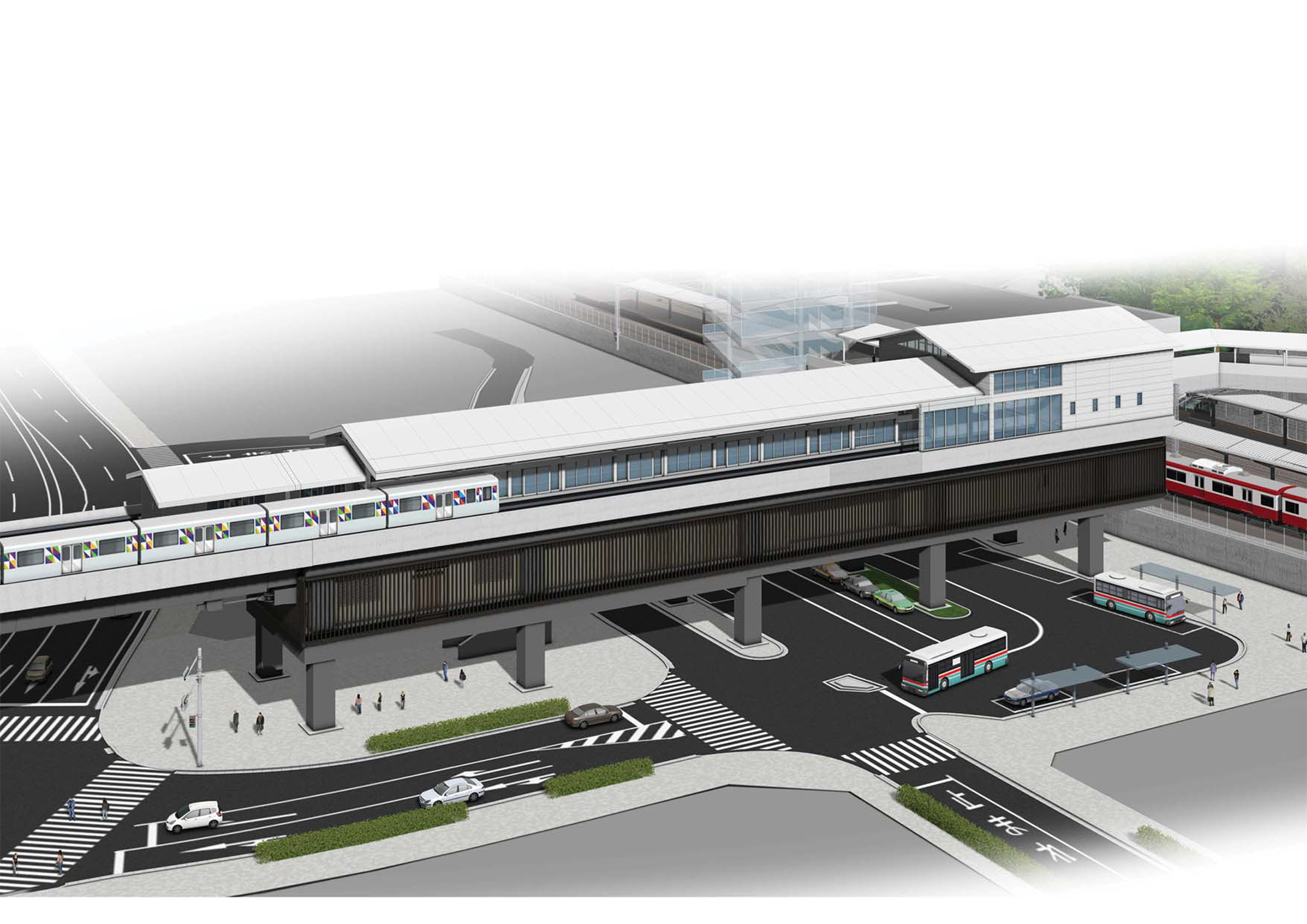 中島 同駅は金沢シーサイドラインが計画された当初から、京急の同駅までの乗り込みを計画していました。しかし、同駅付近の計画が再開発か土地区画整理かで決まらなかったことから現在の駅舎を仮駅として設置していました。現在は土地区画整理で決定したこともあり、京急の駅まで延伸させるべく工事を進めています。