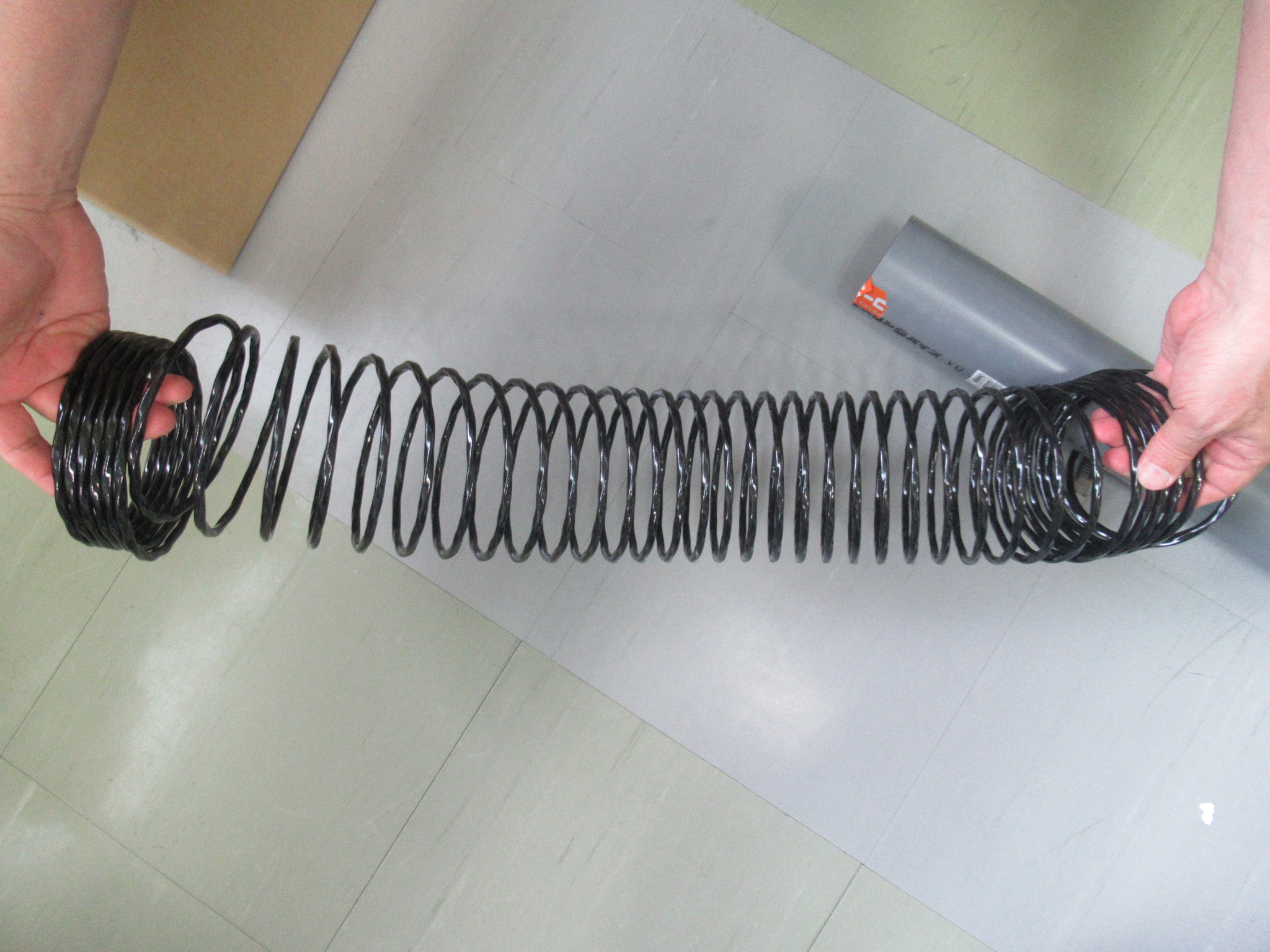 これは、螺旋の固まりを作って現場のケーブルにはめこんでいったり、シート上に螺旋の突起を付けてそのシートにSUSバンドをつけて張りこむだけといった手法の検討をしています。