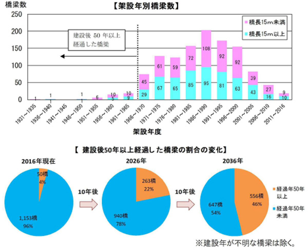 ――ほかの都市では、高度成長期に建設された橋梁が非常に多い傾向です。札幌市の場合、1980年代から90年代のバブル期とその前が多いですが、理由は
