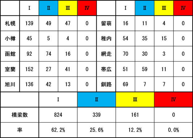 宮下 26年度に83橋、27年度1,324橋、28年度約1,600橋の点検を行いました。全体の状況としては、直接的耐荷力に大きな影響のある変状は少ない、伸縮装置の止水機能低下による漏水や凍結作用による局部的な橋台の損傷(凍害)や、支承の腐食進行が見られるが、早急に補修が必要な変状は少ない、塩害地域にある路線の橋梁は橋梁全体的に鋼材の腐食が確認され、コンクリートのひび割れなどの変状が多くある傾向、となっています(詳細は別表)。