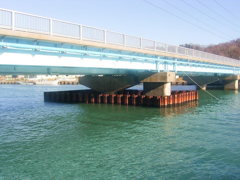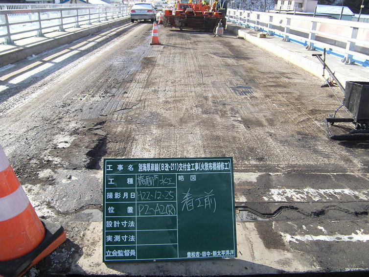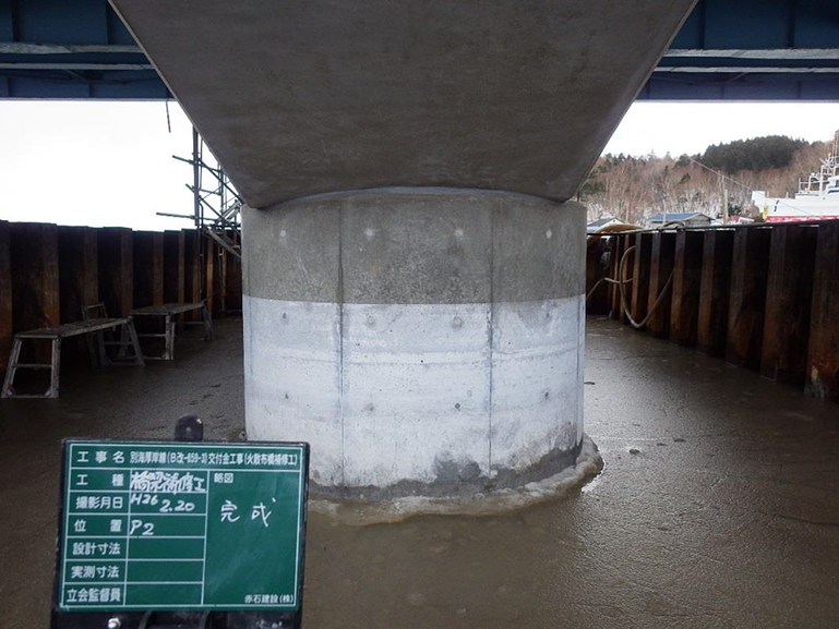 塩害対策の事例としては、主要道道別海厚岸線の海から程近い箇所に供用している「火散布(ひちりっぷ)橋」の下部工に断面修復、表面含浸工などの対策工を実施しています。