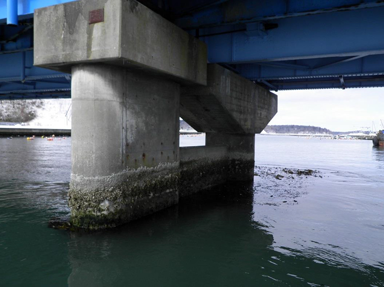 宮下 日本海側の海沿いの橋梁では塩害による劣化が確認されています。具体的には、橋梁全体的な鋼材の腐食、コンクリートのひび割れ、部分的なひび割れです。さらに鉄筋腐食によるひび割れ、断面欠損が地覆・下部工などの一部に出ています。