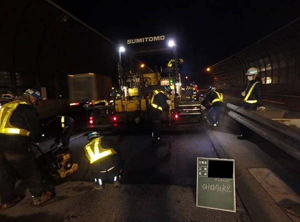 舗装修繕時に床版防水工をあわせて行っていますが、交通量の関係で夜間しか施工できないため、グレードⅠとなっています。グレードⅡの防水工には1週間程度の車線規制が必要ですが、現実的には難しいものがあります。