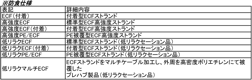 低リラクセーション品の12.7mmと15.2mmは、プレテンション用や内ケーブル、外ケーブルの橋軸方向への使用を想定しています。