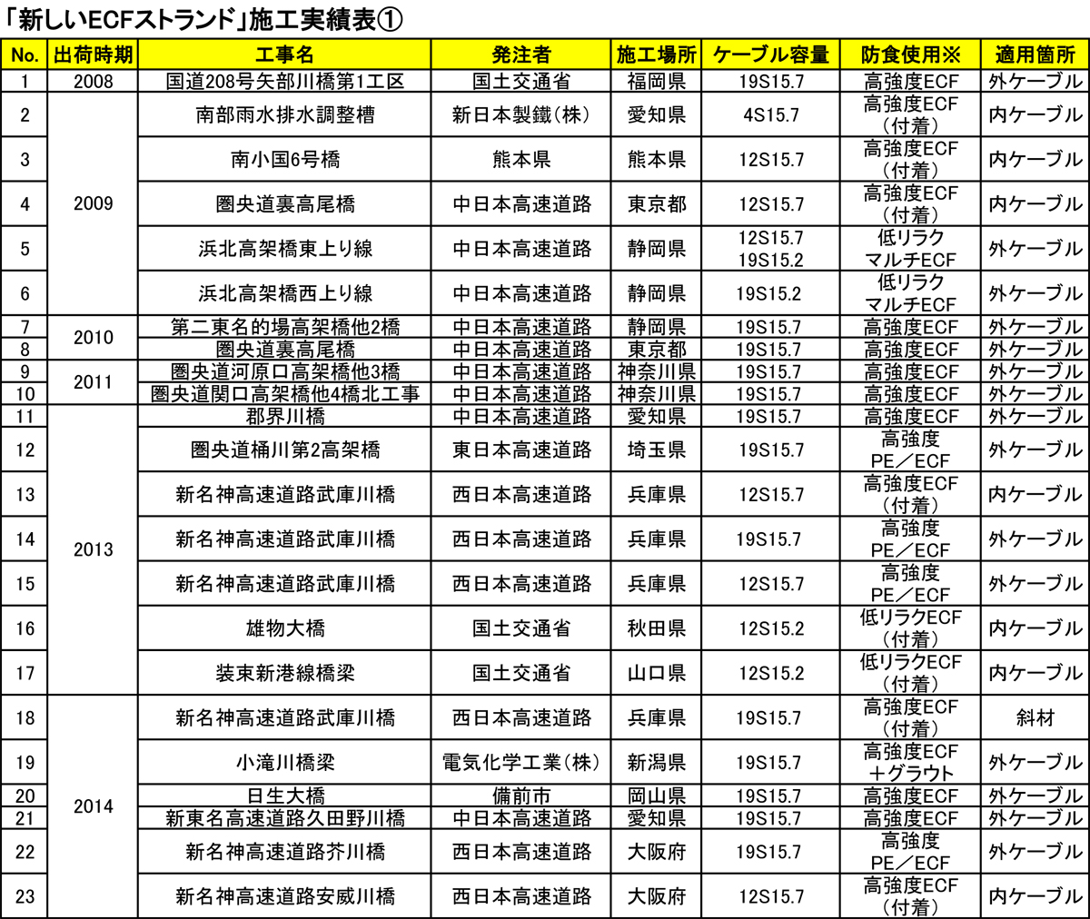 ――たとえばいま下部工が完了している橋梁でも、上部工の凍結防止剤対策のため、工夫したいと考えた時、新しいECFストランドによって、設計時のシース径のまま高強度にして、グレードアップできるということですね