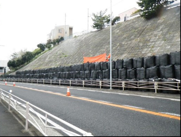 大型土のうによる石積み補強/補強後