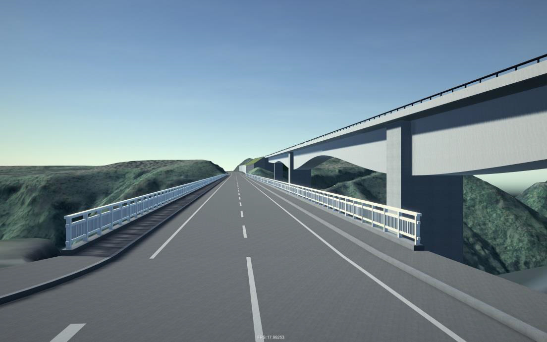 新思惟大橋供用イメージ(左写真)/同橋遠景イメージ(右写真、鋼アーチ橋は思惟大橋)