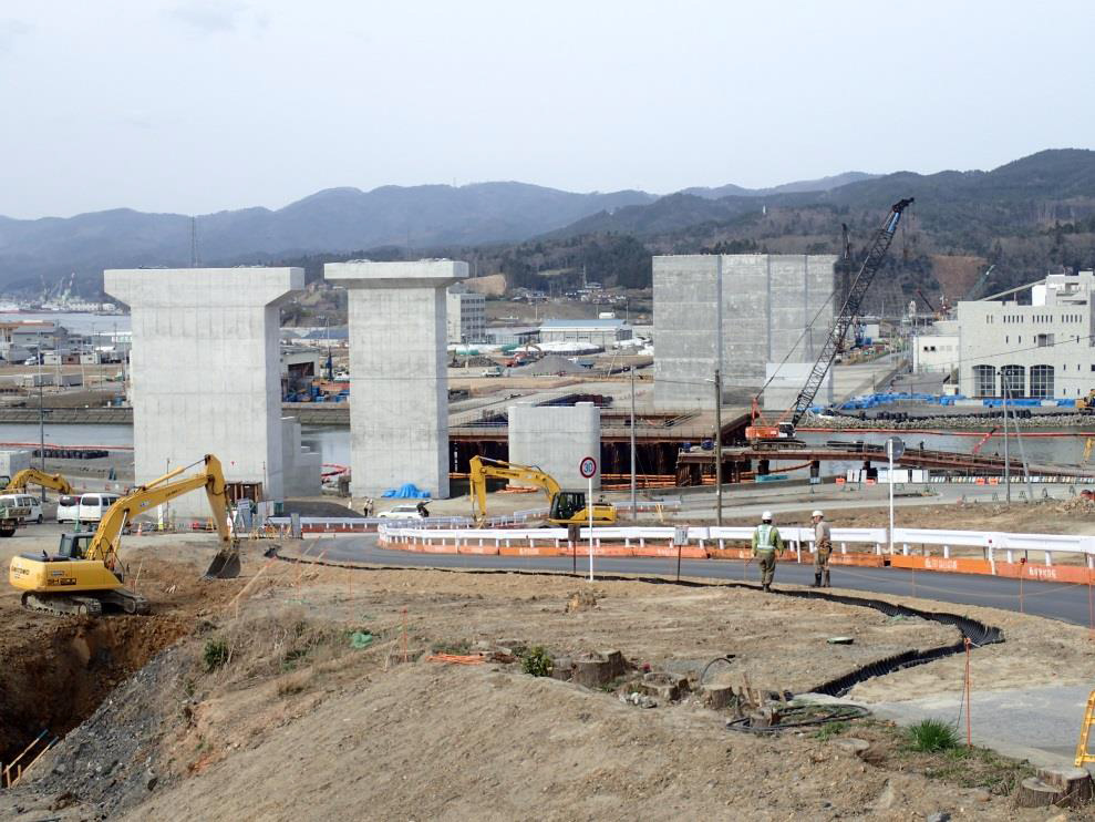 山田 三陸沿岸道の宮城県内では、気仙沼道路の波板大橋と鹿折(ししおり)橋、大峠山橋の下部工に着手します。波板大橋は橋長145mのPC5径間連結ポステンコンポ桁橋、鹿折橋は橋長120mのPC2径間連続ラーメン箱桁橋、大峠山橋は橋長276mのPC5径間連続ラーメン箱桁橋です。
