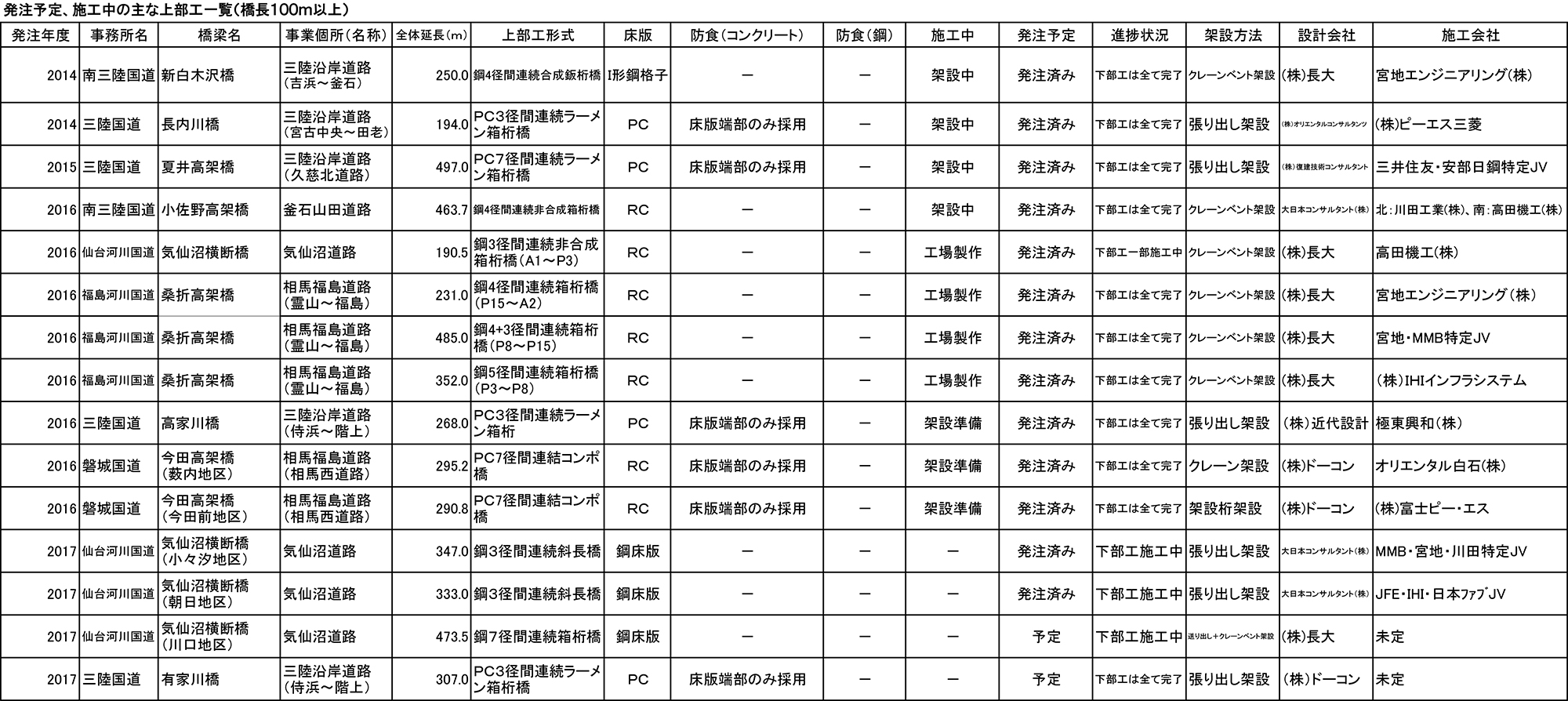 主要橋梁上部工一覧