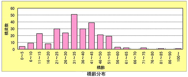 古い設計基準の橋梁は床版厚が薄く、防水工がされていないものもあることから、交通量の増加に伴い、劣化が進みやすくなっております。