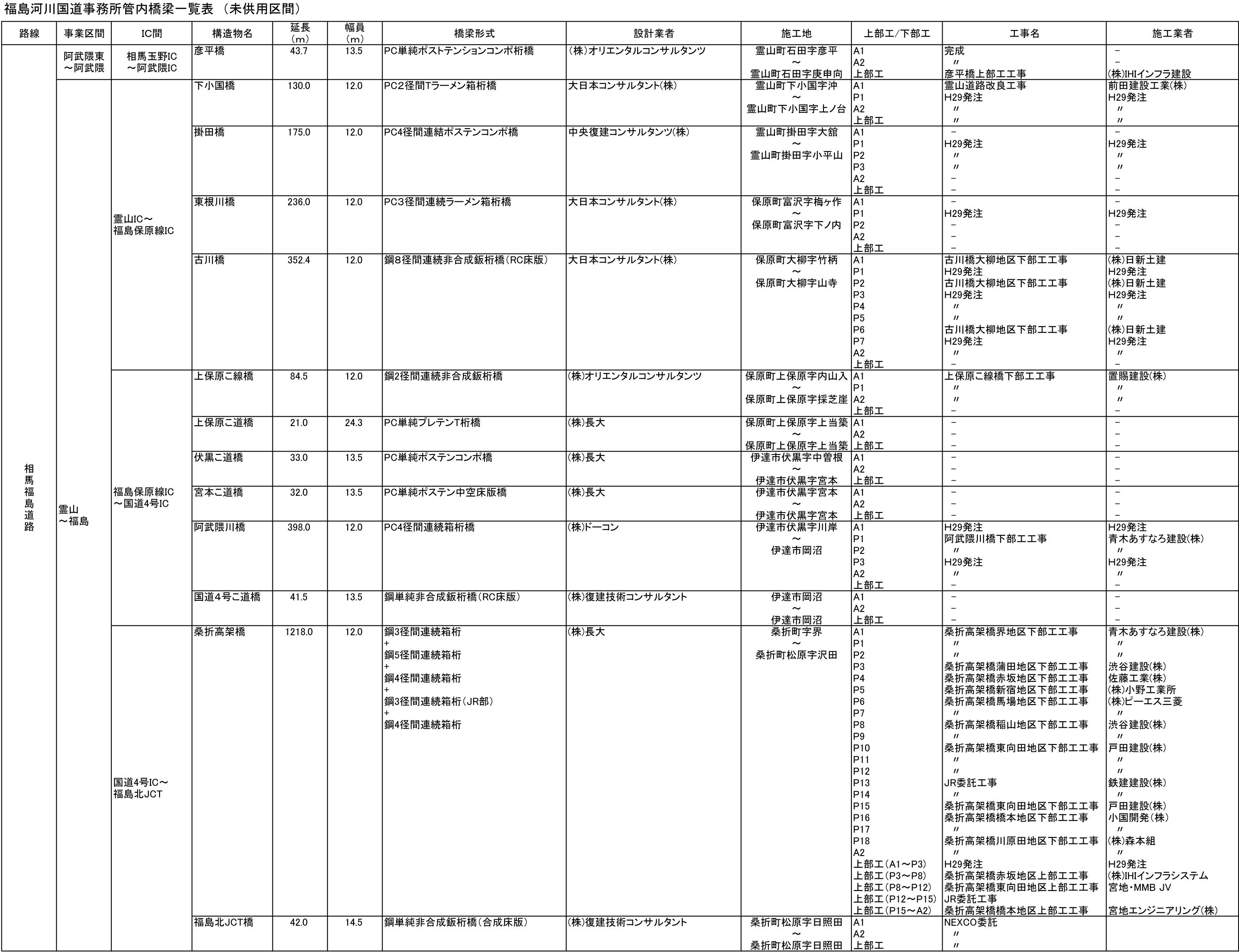 管内で建設中の橋梁一覧表