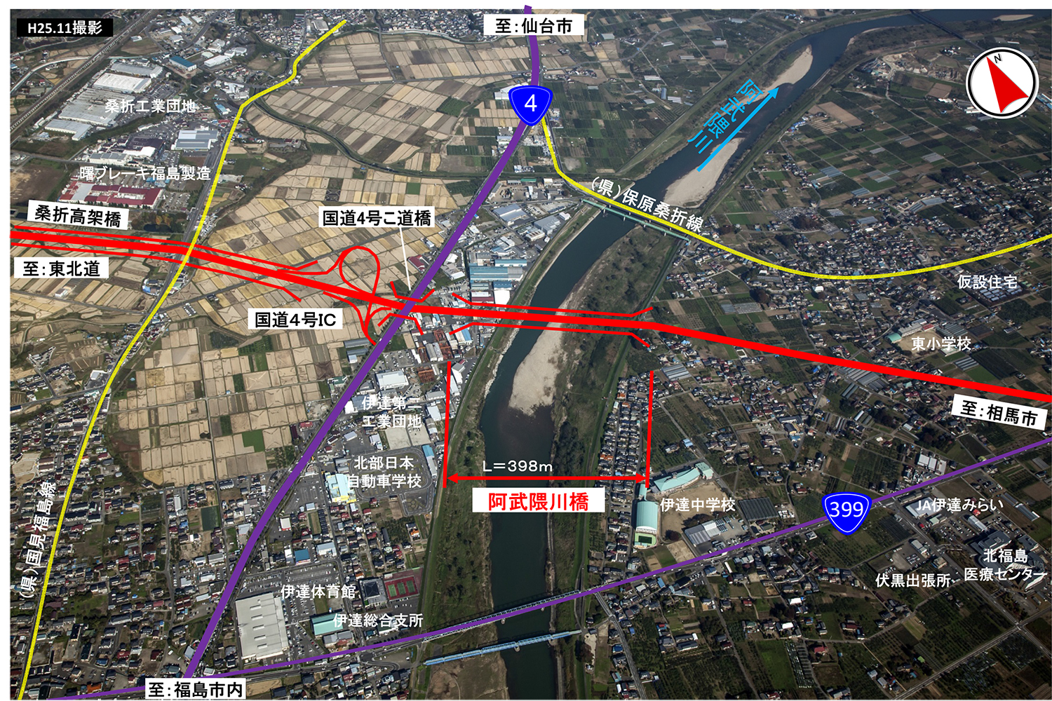 阿武隈川橋の架設位置