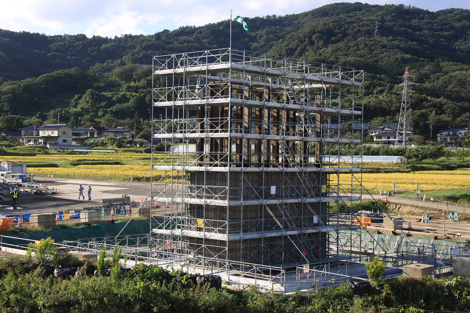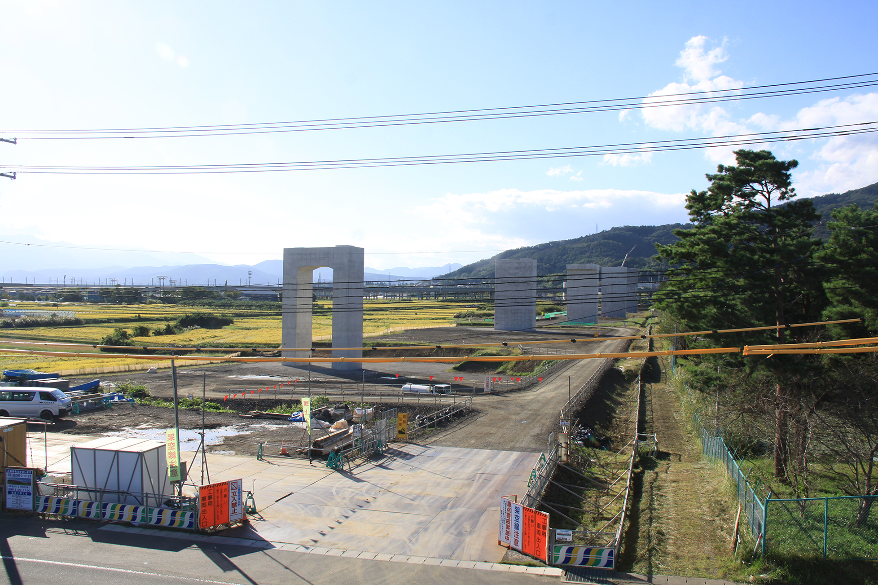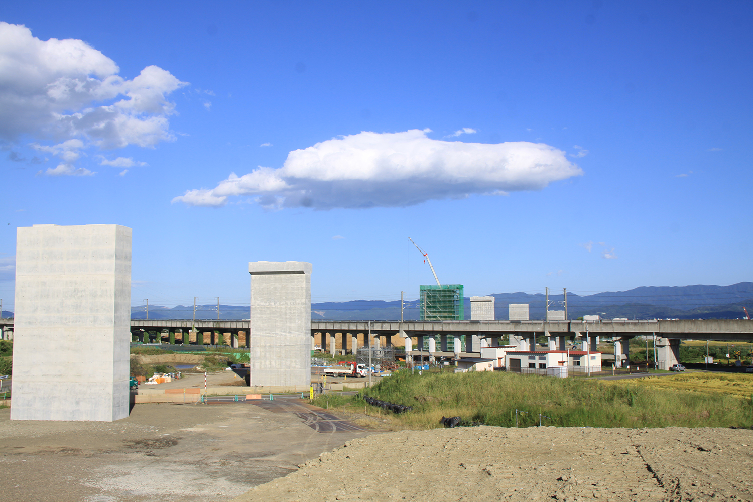 桑折高架橋の進捗写真①新幹線を隔てて東側(井手迫瑞樹撮影)