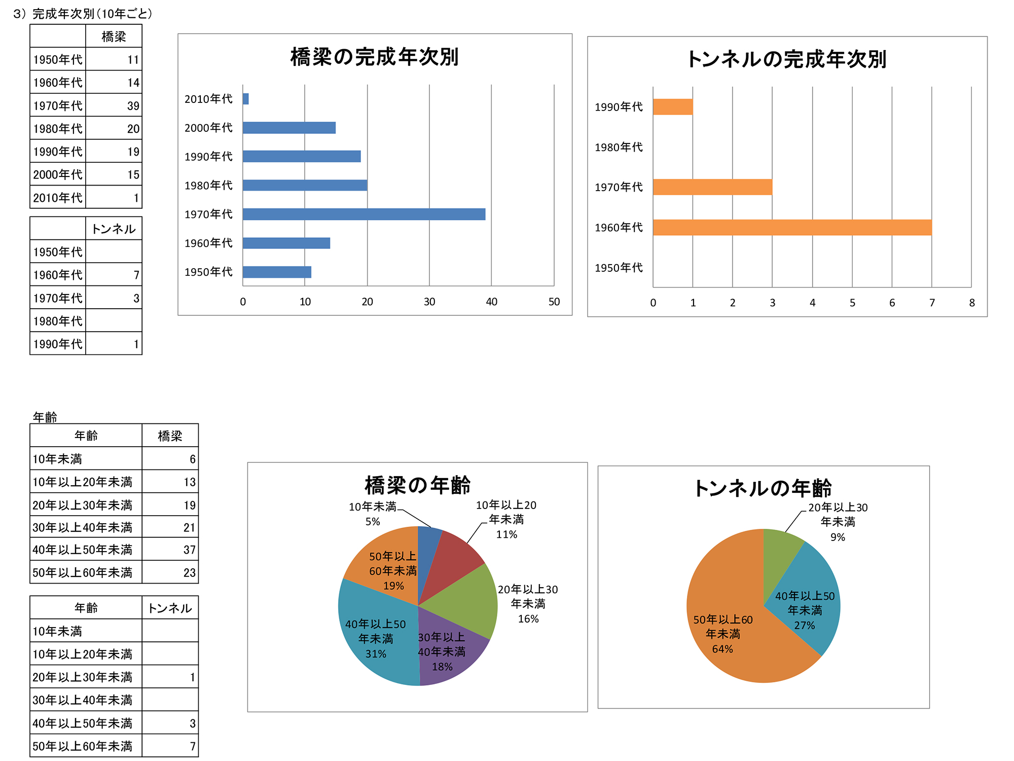 橋梁・トンネルの建設年次別内訳/同延長別内訳