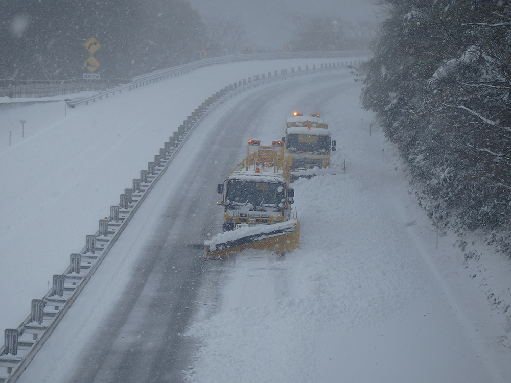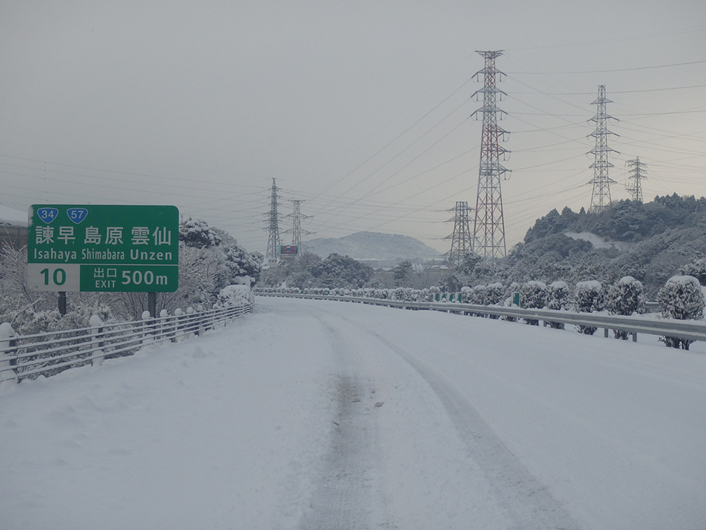 長崎バイパスは生活道路となっていますので、優先して雪氷対策に取り組み、平成12年度から冬用タイヤ規制を実施して降雪時の交通確保をしています。さらに、長崎市内から長崎空港までの降雪時の交通確保のために、平成28年12月から長崎多良見IC~大村ICで冬用タイヤ規制を試行導入しています。試行導入の結果、規制下における大型車の長崎道の利用を確認することができ、冬季の物流確保のためには一定の効果があることがわかりましたので、今後も冬用タイヤ規制の運用方法の改善をしていきます。