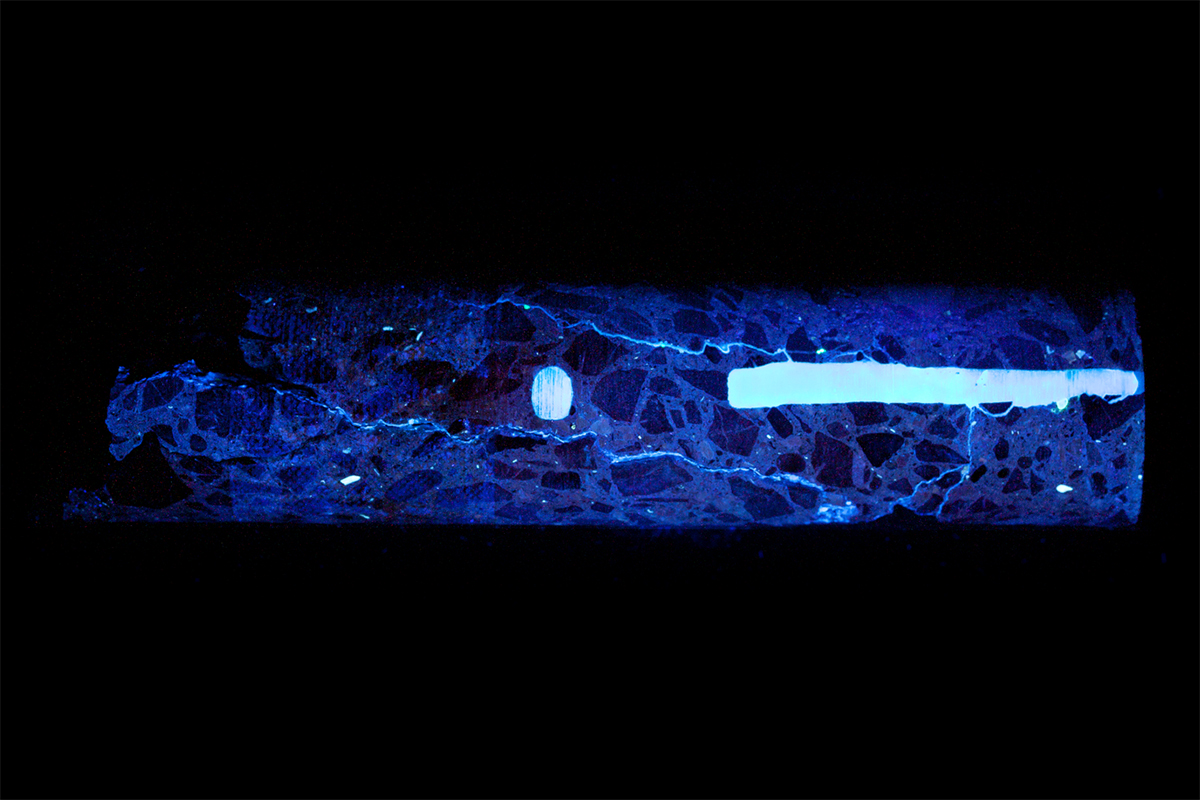 しかし、水はひび割れ幅0.05mmでコンクリート内に通水浸透します。漏水の分野でも健全化をすることが必要であると考えると、少なくとも0.05mm以下にも樹脂注入ができるものにしなければならず、なぜ注入ができないのかを共同研究終了後も継続して考えていました。