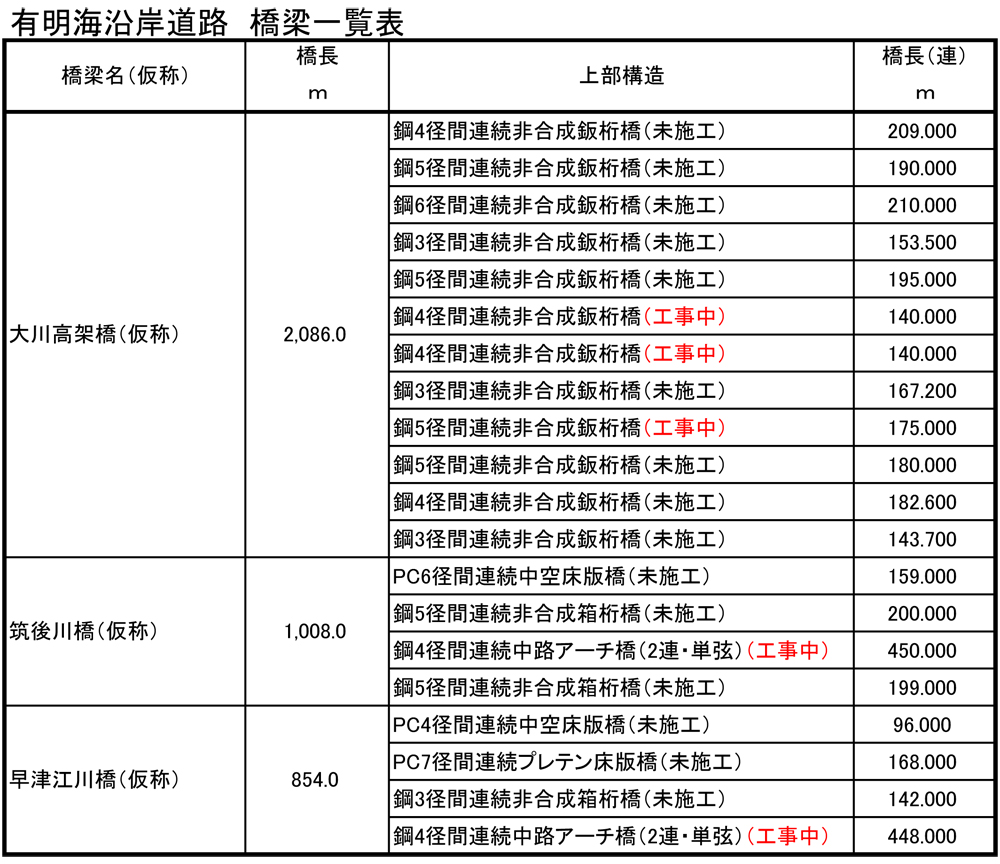 有明海沿岸道路 大川高架橋、筑後川橋、早津江川橋(いずれも仮称)の橋梁概要