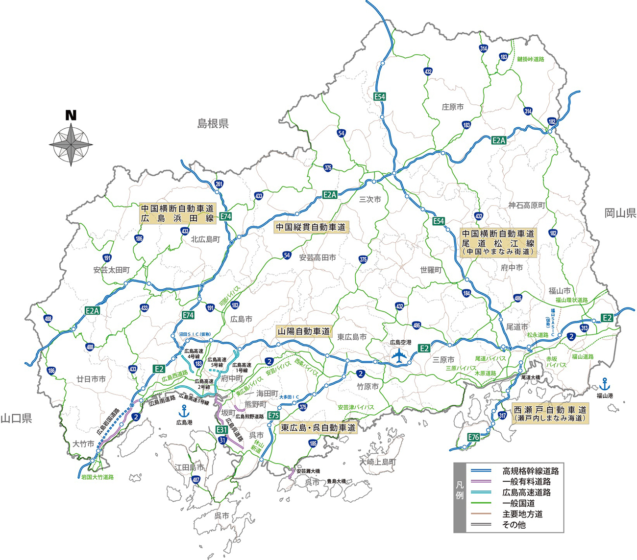広島県は人口約283万人(平成30年1月推計)で、面積は全国11位の8,479km2となっている。県土は北部の雪寒地域から南部の温暖な沿岸・島嶼部まで広がり、「日本の縮図」とも言われている。構造物においても全国で課題になっているほとんどのことがあてはまる広島県の道路整備方針と維持管理の取り組みを同県土木建築局長の三上幸三氏に聞いた。