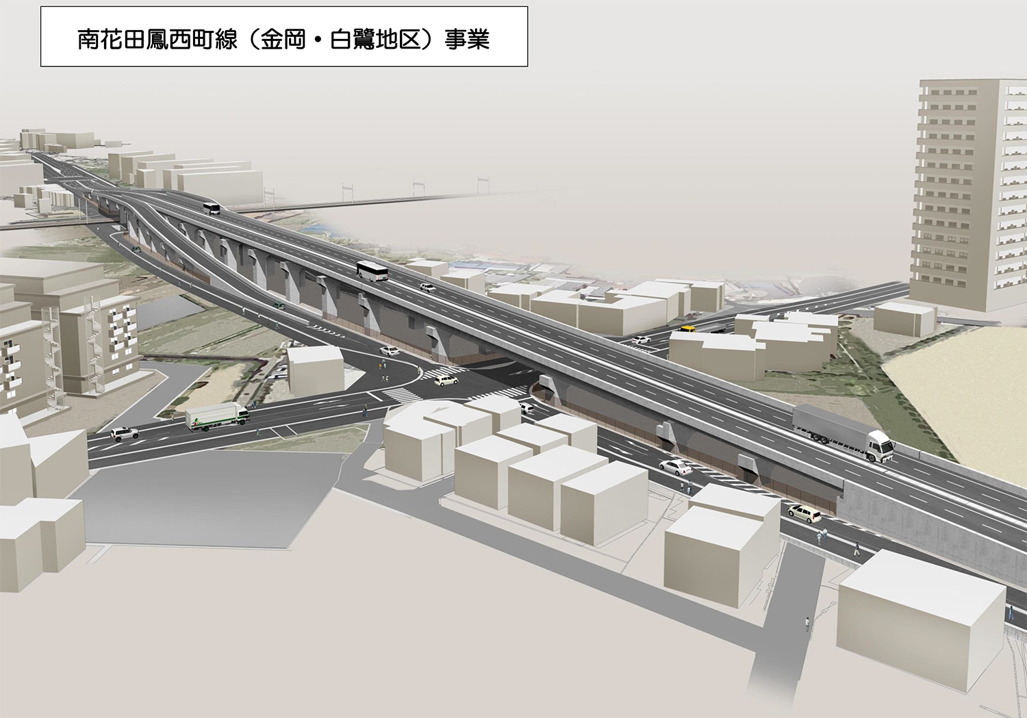 南花田鳳西町線で橋長約650mの跨線・跨道橋を計画