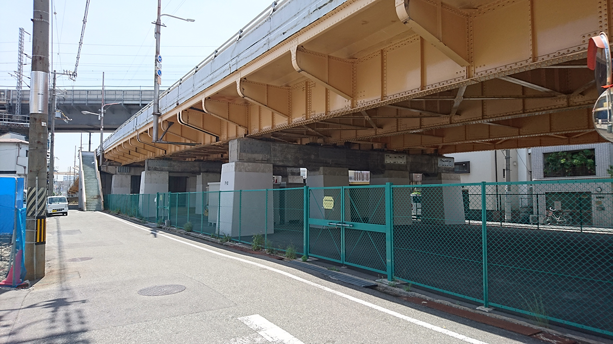 補修工事を進める新御堂筋高架橋/改良工事が進む阪堺大橋(右写真は井手迫瑞樹撮影)