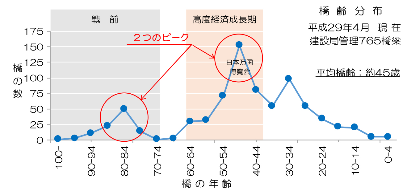 765橋を管理、50年以上経過している橋梁は31%に達する