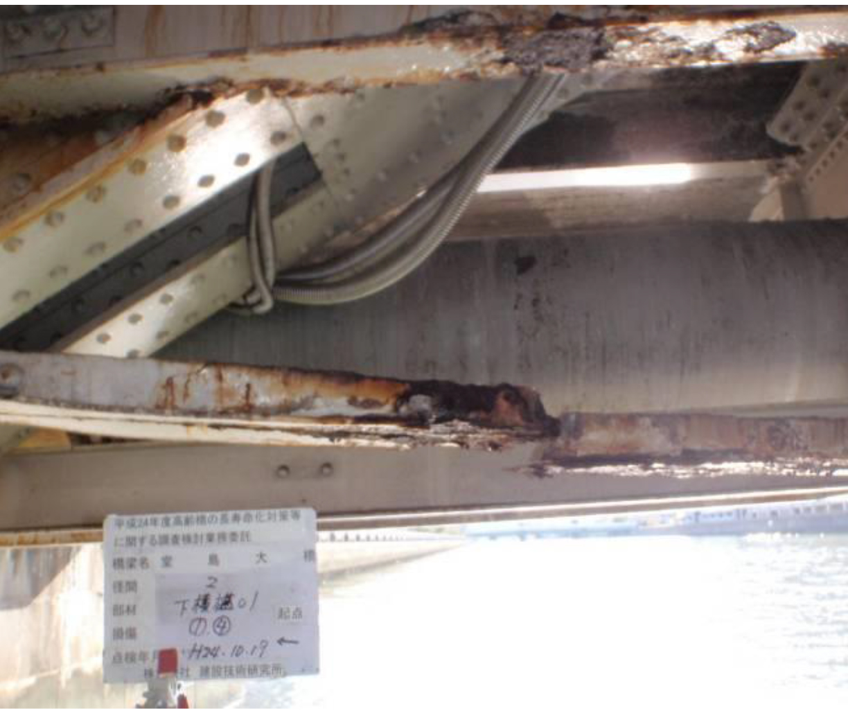 床版からの漏水による桁の腐食・破断/船舶の接触による桁の損傷
