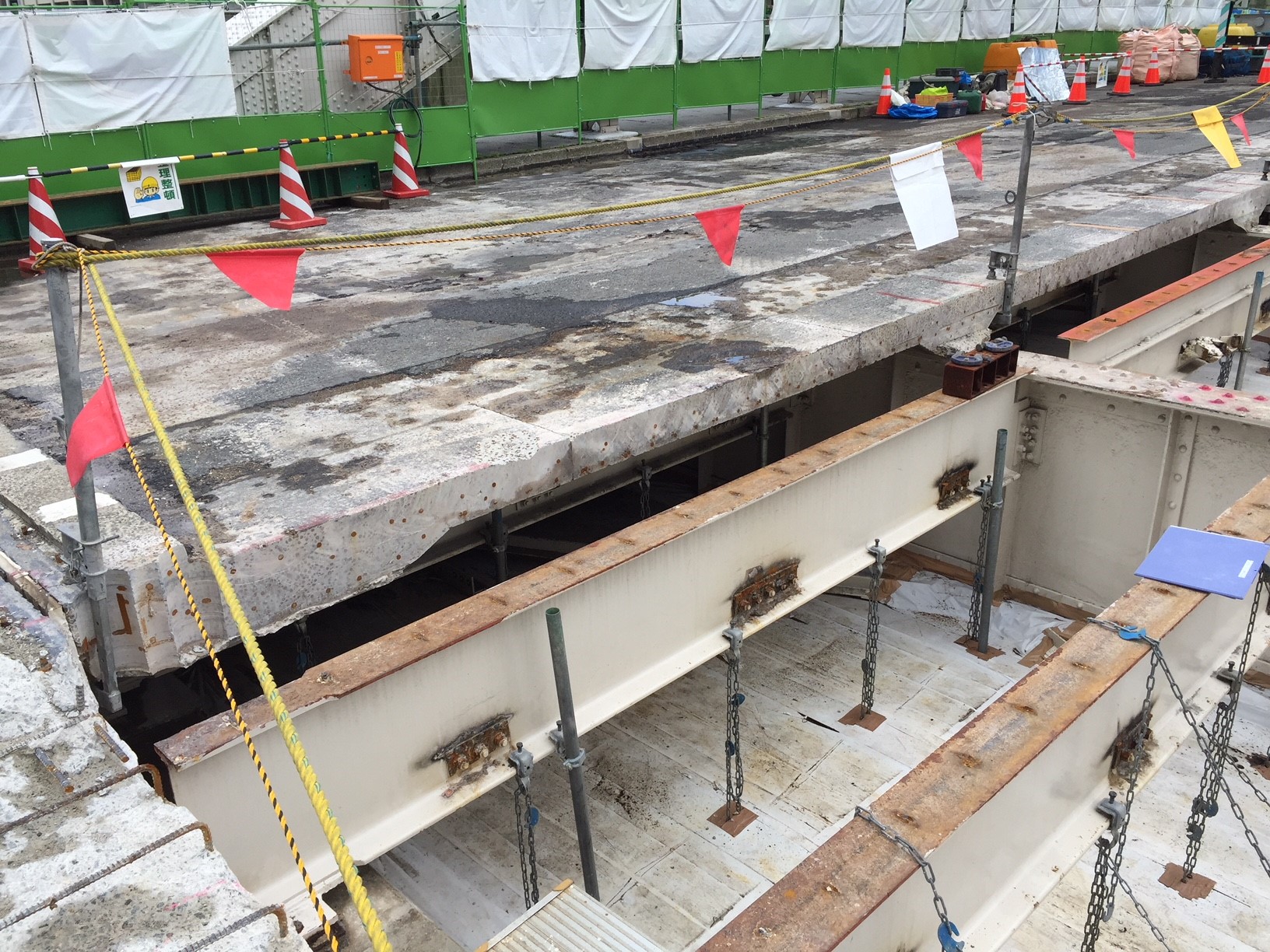 堂島大橋の施工状況(RC床版や床組の撤去)