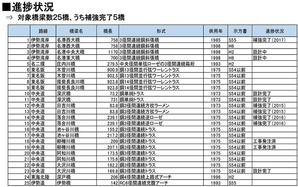 ――東名阪道の木曽川橋、揖斐長良川橋は昭和54年以前ですから補強の必要がありますね