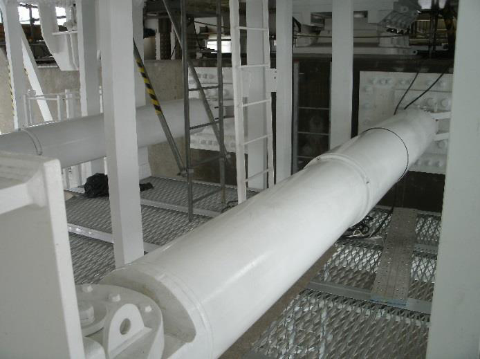 制震ダンパー(右写真)を点検する通路としてアルミ製の検査路を採用した