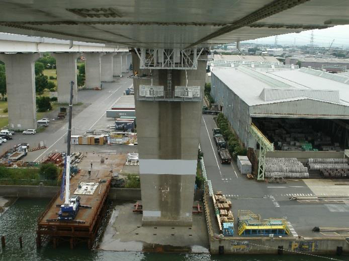 池田 伊勢湾岸道としては10数年と新しいこともあるので、顕著な塩害はありません。鋼橋部分はすべて重防食で、コンクリート部もまだ顕著な塩害は生じていません。
