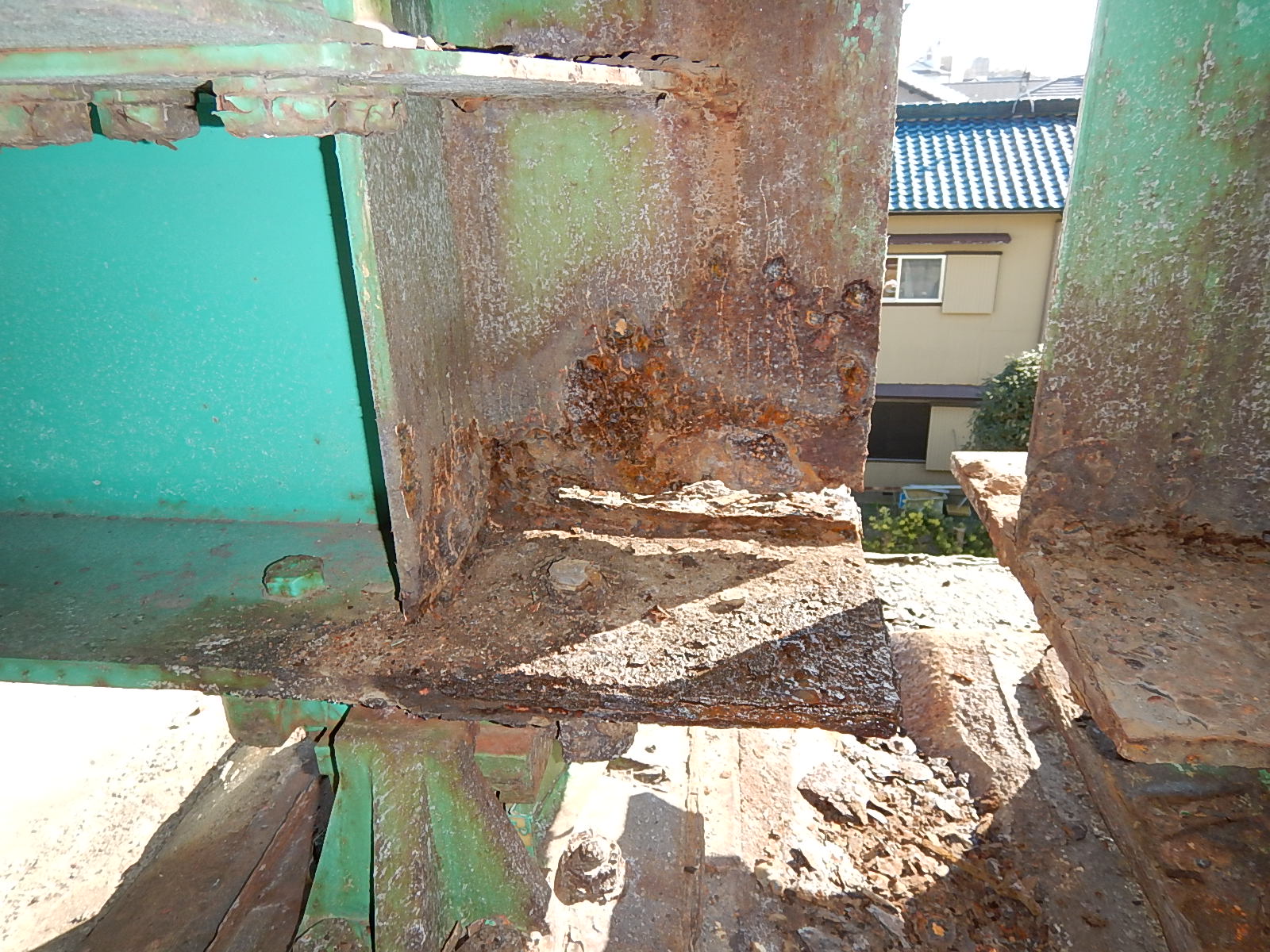 鋼橋では、漏水でやられて孔食が生じているものもあります。昭和39年道示で設計された床版など、設計年次が古く薄い床版が貫通ひび割れを起こして、そこからの漏水により腐食している鋼部材も見受けられます。