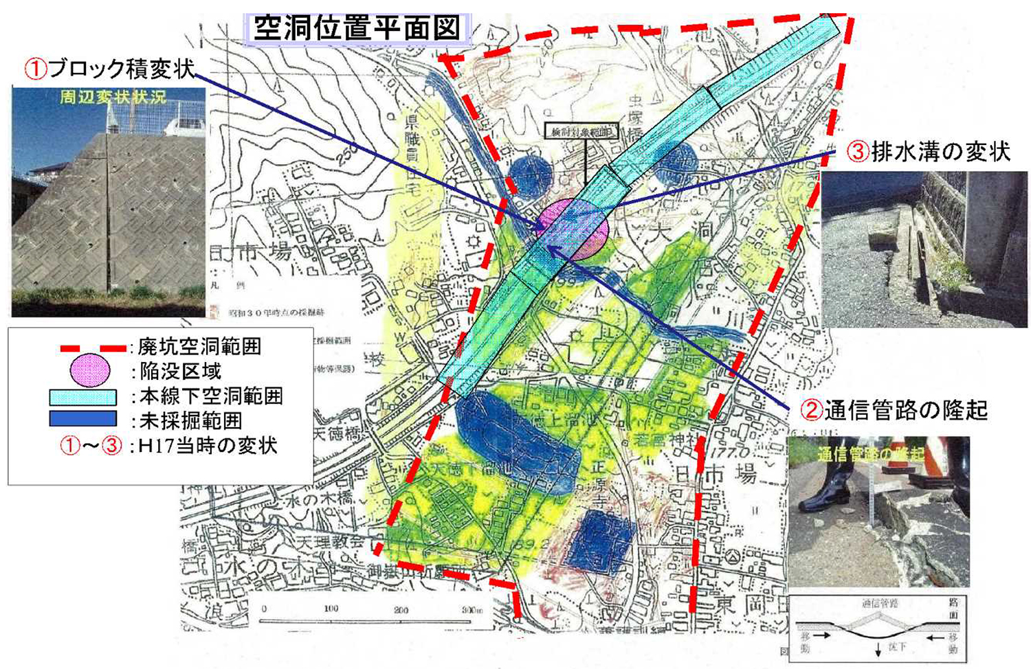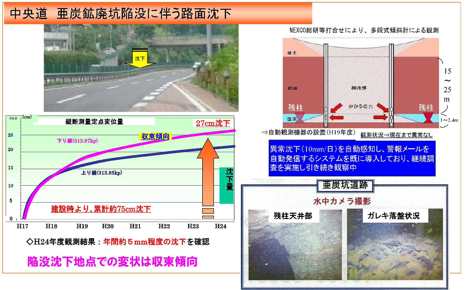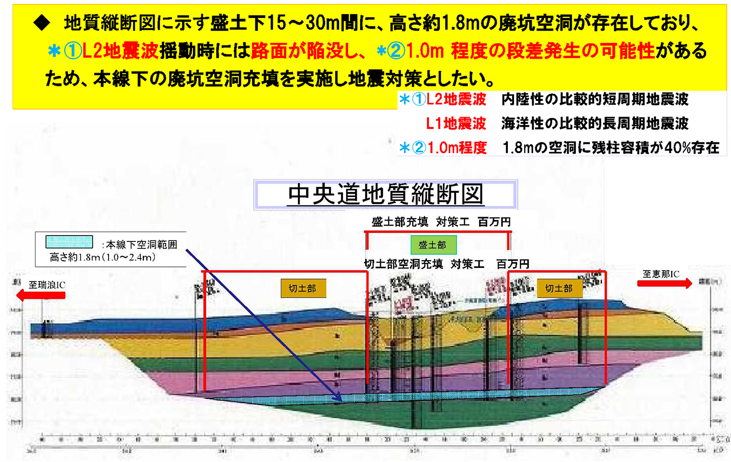 中央道瑞浪地区で亜炭廃坑空洞対策が必要