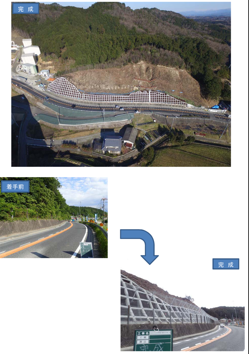 ――全国的に豪雨などによる土砂災害が相次いでいますが、道路に関する斜面や古い法面などをどのように補強・補修して道路を守っていくのか、具体的な事例や計画がございましたら教えてください