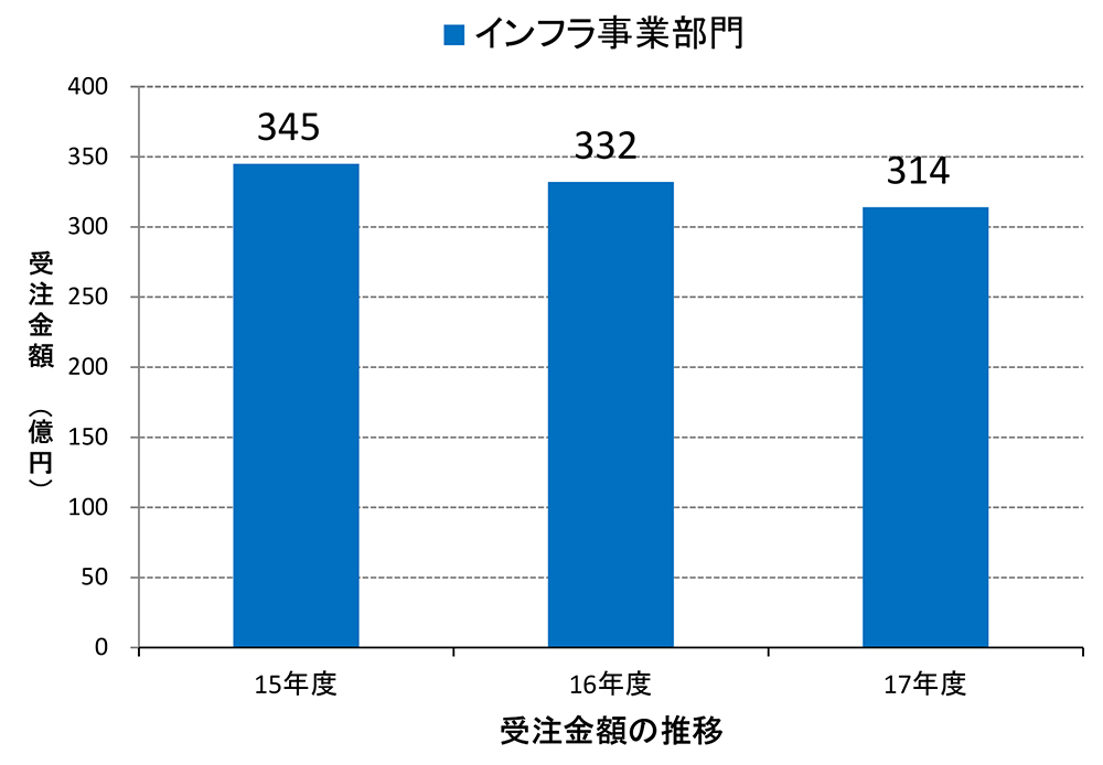 嶋 昨年度は受注高が314億円、売上高が282億円と2016年度を上回ることはできなかったが、営業利益は14億円と増加した。ネックとなっていた不採算工事が一掃されるとともに、個別工事の採算改善が大きい。3年連続の黒字化を実現できた。