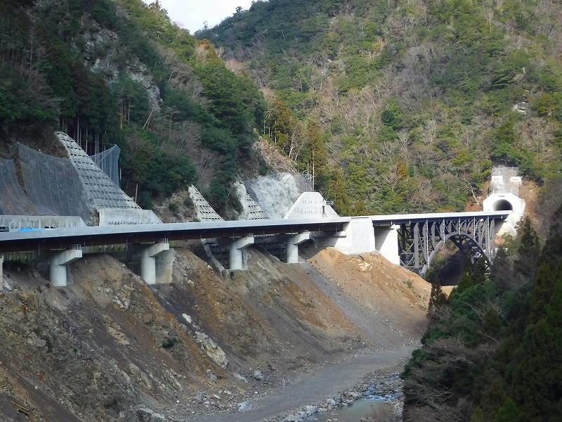構造物は、トンネル3箇所(第1号トンネル:約260m、第2号トンネル:約1,088m、第3号トンネル:4,969m)、橋梁3箇所(第1号橋梁:約34mを、第2号橋梁:約102m、第3号橋梁:約443m)を予定しています。