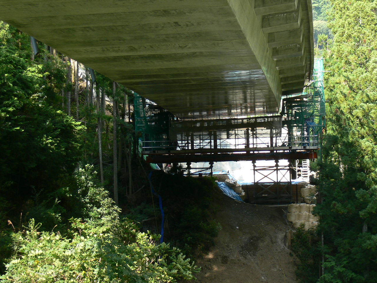 五條市大塔町宇井~小代間4.1kmのバイパス事業で、トンネルが25%、橋梁43%と構造物比率の非常に高い道路事業でした。同事業では堂平大橋(橋長376m、PC6径間連続箱桁橋)、天ノ川大橋(162m、スパンドレルブレースドアーチ(上路式トラスドランガー))、夢翔大橋(290m、PC3径間連続エクストラドーズド)などの長大橋を建設しました。