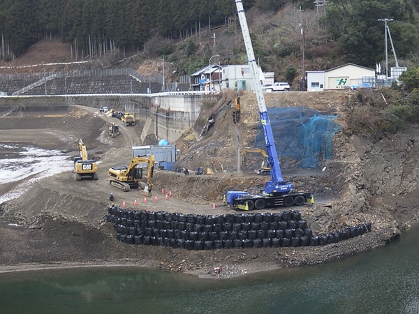 橋梁は(仮称)新阪本橋(橋長106m、鋼下路式ローゼ桁橋)を発注する予定です。H30年度は上部工を発注予定です。現在はH29年度に発注の下部工(A1橋台)を施工中です。A2橋台は水位が低下する10月より工事を再開予定です。現在は同橋の取り合い部の施工を行っています。また(仮称)阪本トンネル(899m、NATM、設計済み)も予定しています。