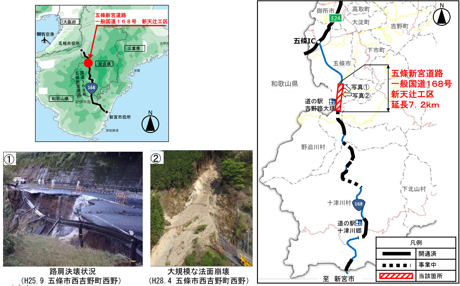 ――新規採択された国道168号新天辻工区について、構造物予定を教えてください