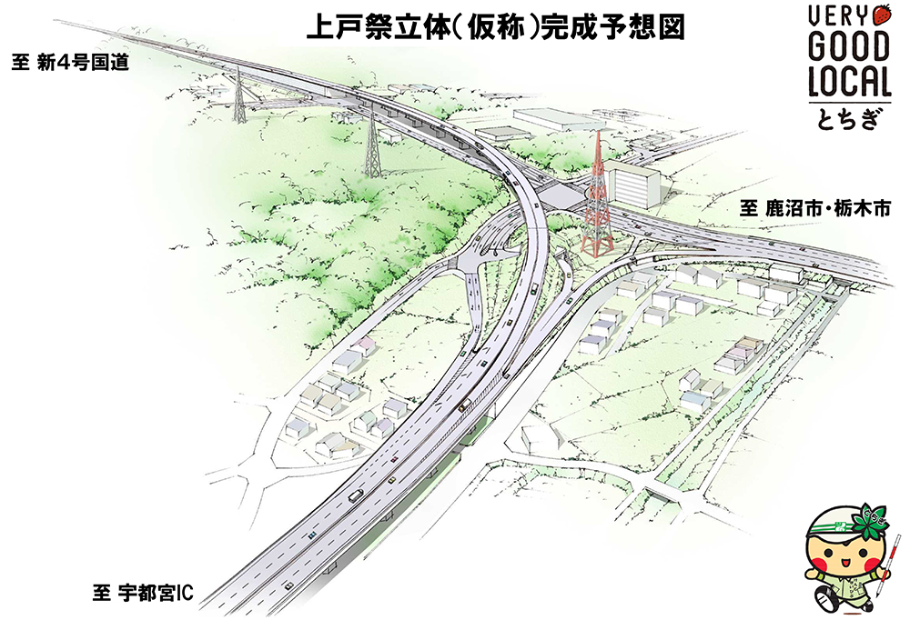 供用済みの下川俣陸橋/上戸祭立体(仮称)完成予想図