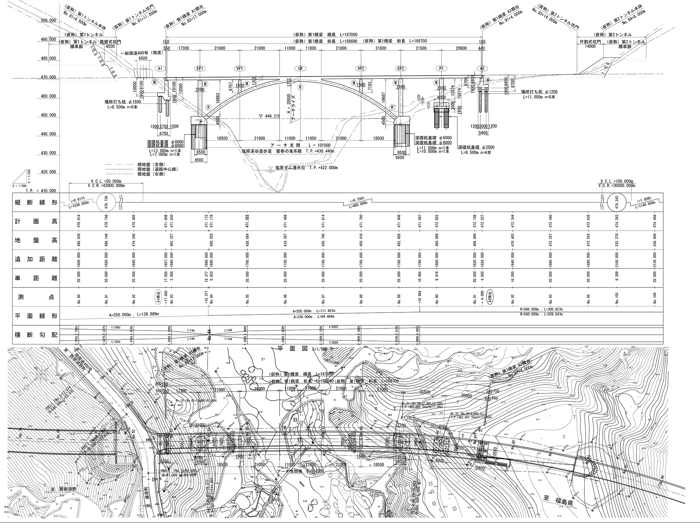 下塩原第一橋梁(仮称)の概要図と橋梁一般図