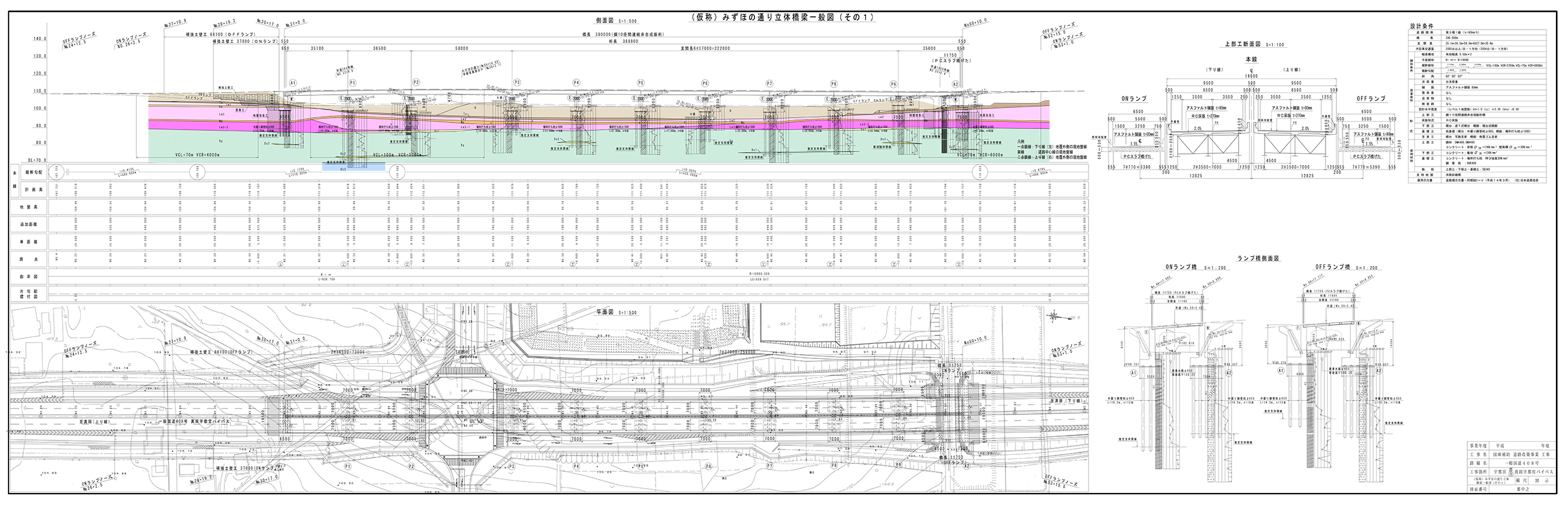 施工方法では、現道が接近しているうえに交通量が40,000台/日を超えていますので、現況交通への負荷を極力少なくするように配慮しました。